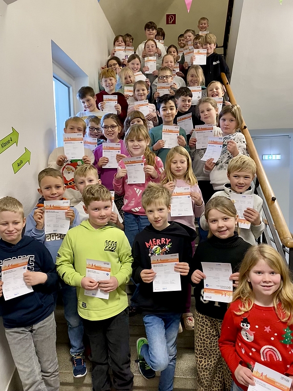 Viele neue Sportabzeichen für das Jahr 2025 wurden in den letzten Tagen in unseren Standorten verteilt. Insgesamt 166 Kinder erfüllten die geforderten Leistungen für das Deutsche Sportabzeichen in den Stufen Bronze, Silber oder Gold. Ob im regulären Sportunterricht oder im Rahmen des Sportfests im Sommer stellten sie ihr sportliches Können in verschiedenen Bereichen unter Beweis. Gefragt waren Ausdauer, Kraft, Schnelligkeit und Koordination, ergänzt durch den Nachweis sicherer Schwimmfertigkeiten.
